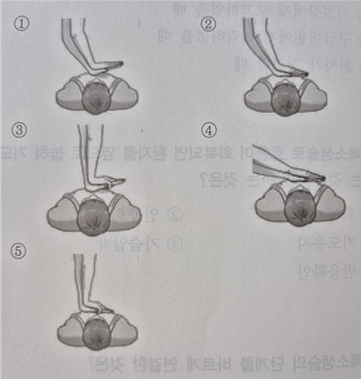 | ② | 빗장뼈 아래 | 젖꼭지 아래 중간 겨드랑선 |