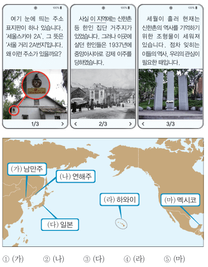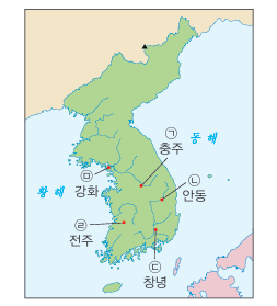 50. (가) 지역을 지도에서 옳게 찾은 것은? [1점]
