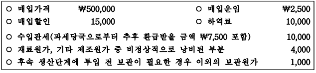 4. (주)한국의 다음 재고자산 관련 자료를 이용하여 구한 재고자산의 취득원가는?