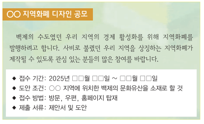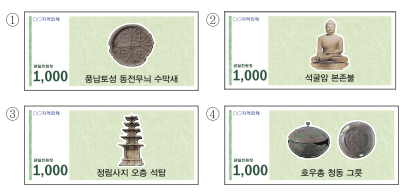 8. 다음 가사 공모전에 제출할 지역화폐 도안으로 가장 적절한 것은? [3점]
